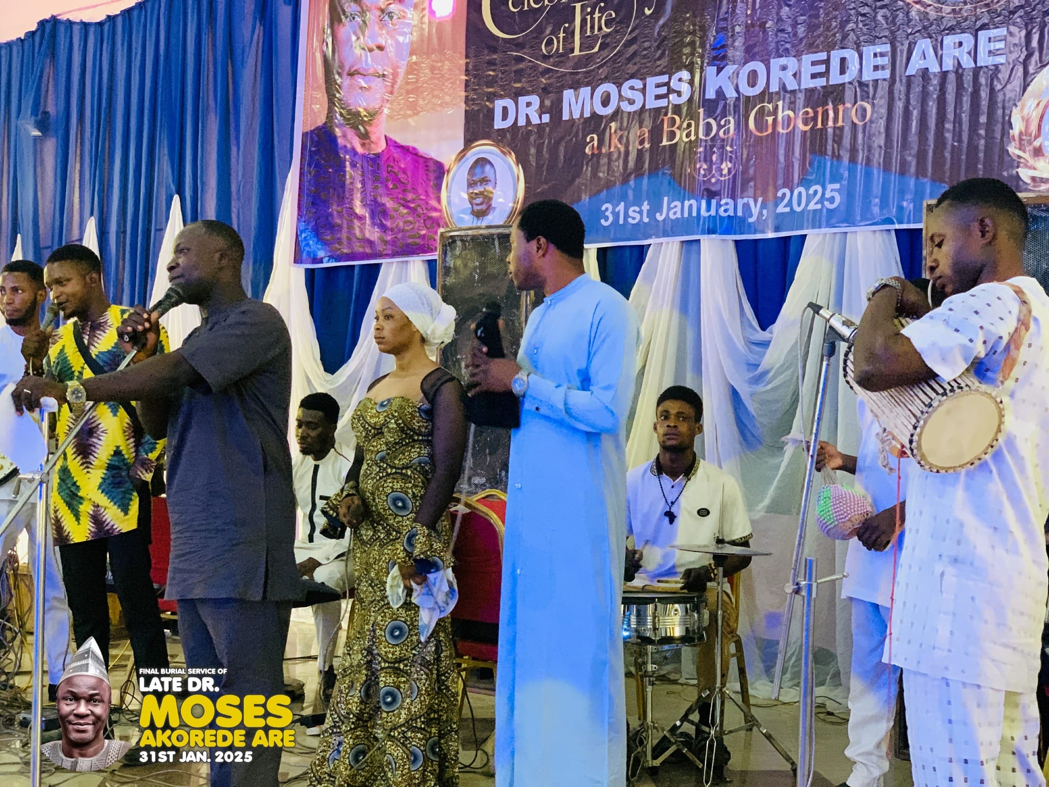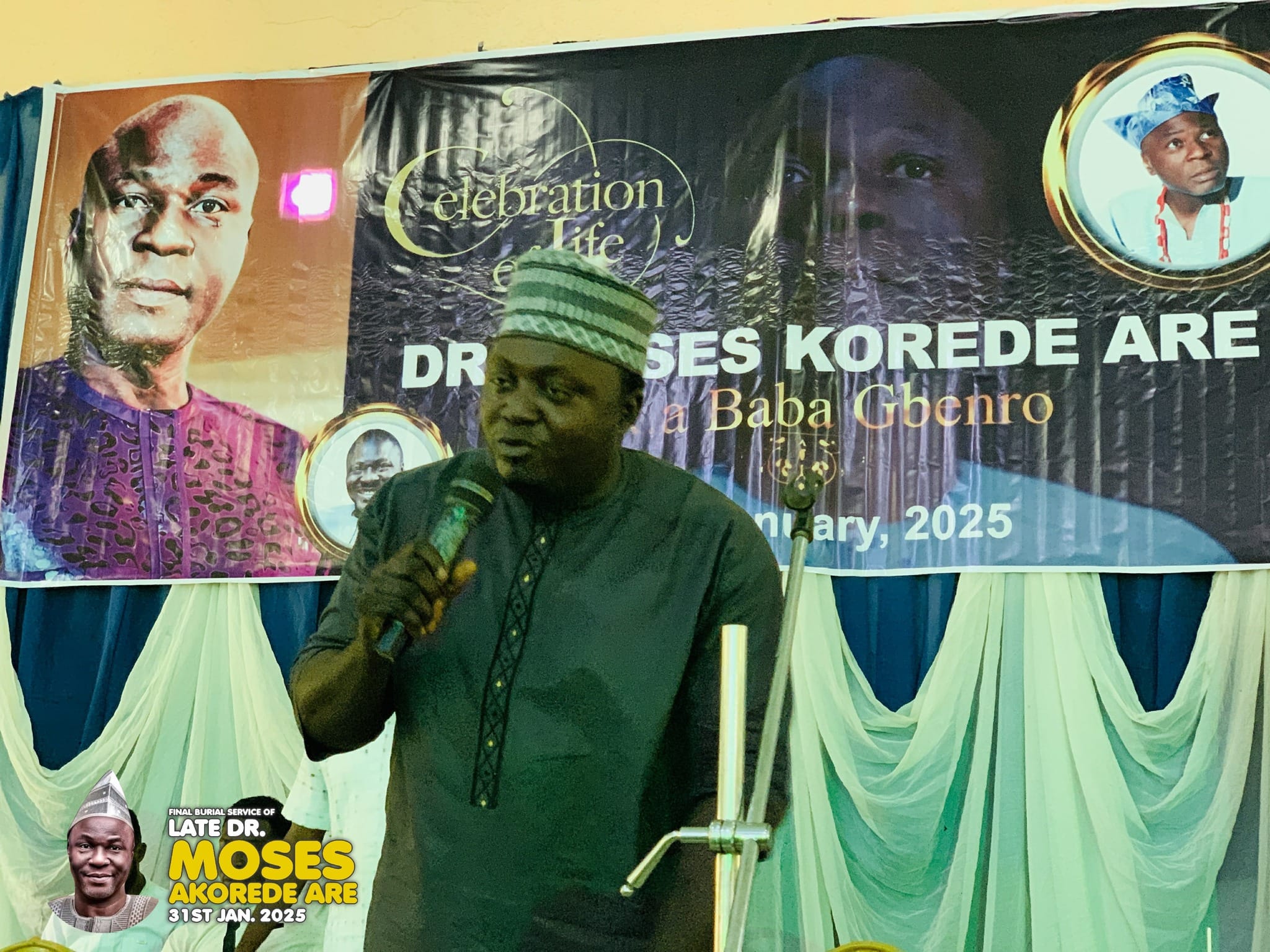 The late gospel filmmaker and president of Calvary Drama Ministry, Dr. Moses Korede Are, widely known as Baba Gbenro, has been laid to rest in Ogbomosho, Oyo State. His burial took place on Friday, 31st January 2025, at Orita Aje, Iresa-Apa, following a solemn service held at House to House Prayer Ministries, Inc.